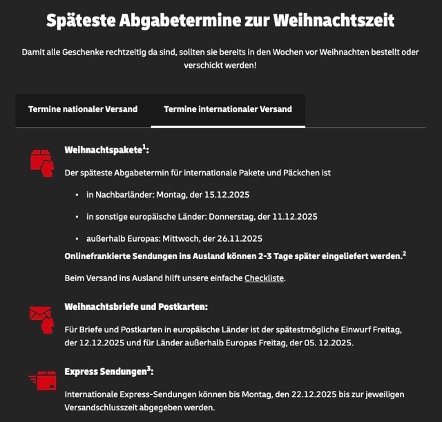 Kundinnen und Kunden müssen wissen, bis wann sie spätestens bestellen sollten, damit ihre Weihnachtsgeschenke mit größtmöglicher Wahrscheinlichkeit rechtzeitig ankommen. Klare Cut-off-Dates reduzieren Rückfragen und schaffen Vertrauen.